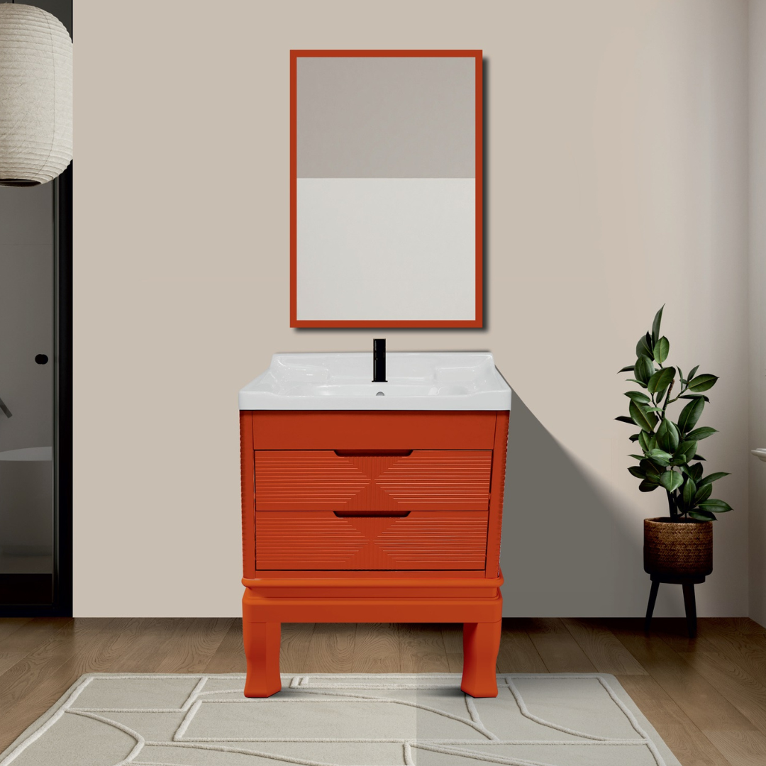 Add a modern rustic charm to your bathroom with the ZYRA Vanity from LEVEL UP HOME SOLUTIONS. Featuring a durable polymer cabinet, a spacious ceramic basin, and a sleek mirror—this vanity comes in rich wood-inspired finishes like Walnut Glow and Rustic Teak for a warm, natural look.